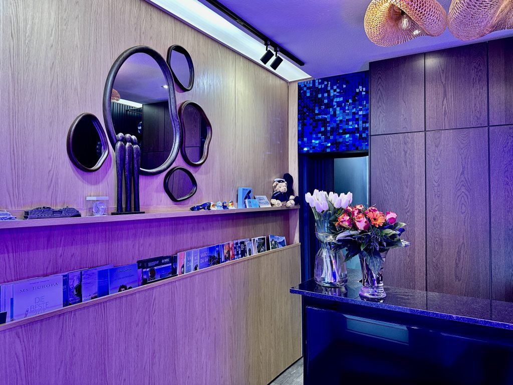 Gegenüber vom Kreuzfahrtterminal in Lübeck Travemünde liegt unser Kreuzfahrt Reisebüro in der Vorderreihe 42. Das Büro spiegelt den Namen „Unendliches Blau“ auch in der Einrichtung wieder. Bei uns gibt es keinen „Reisebüro Schalter“, sondern wir beraten persönlich und individuell auf unseren gemütlichen Lounge Möbeln.