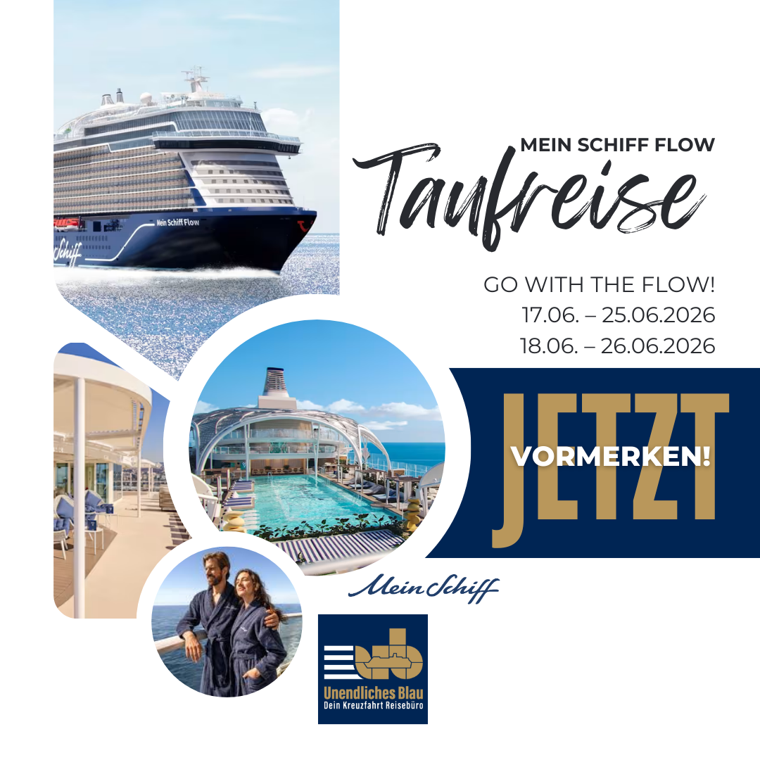Hier kannst du dich für die Taufreise der Mein Schiff Flow verbindlich vormerken lassen: