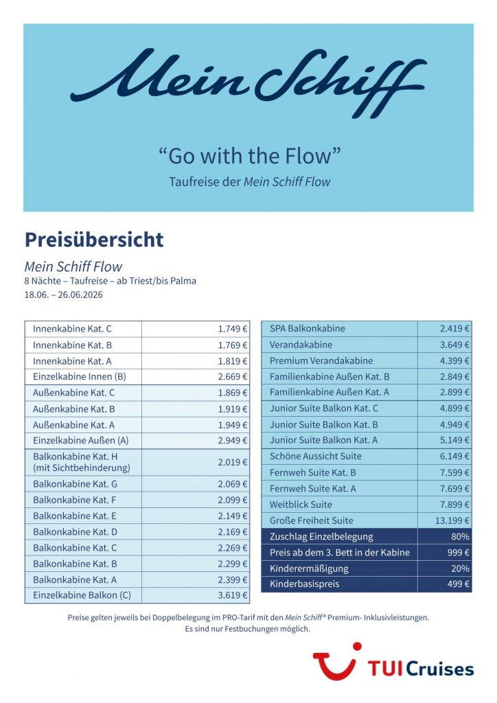 Buchungs-Vormerkung Taufreisen der Mein Schiff Flow